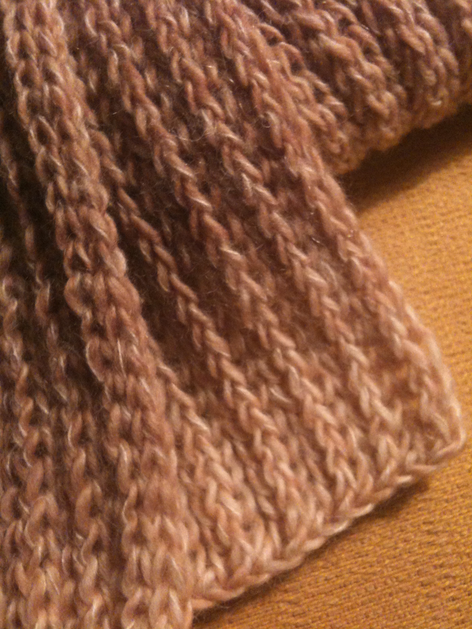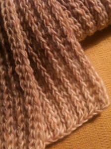For this scarf I used Hobby Lobby’s Rainbow Wool (Autumn) yarn on my knitting board. I used a simple rib stitch and it turned out beautiful! I’ll certainly use this yarn again!