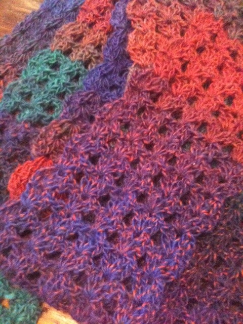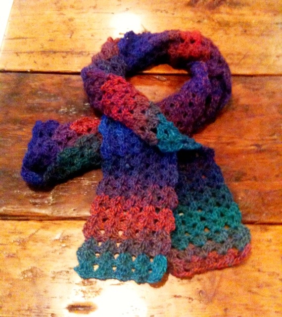 This was a quick scarf to make and I really liked this yarn. The scarf is made from two skeins of classic shades universal yarn. This was the first time I tried doing a fan stitch which is a little bit different from a shell stitch. I’ll have to make some more in different colors!