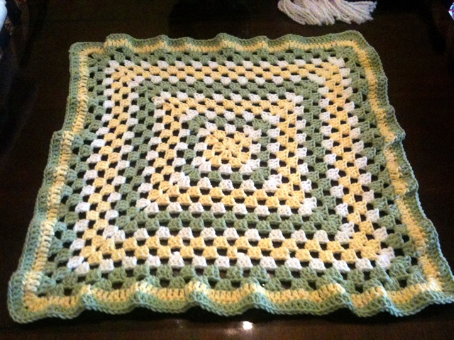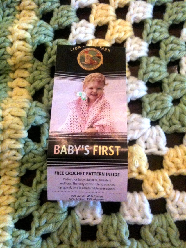 This is a giant granny square baby blanket. I used baby’s first yarn by lion brand.
