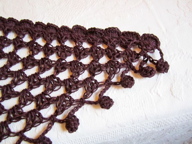 For this shawl, i of course, used no pattern! 🙂  I started out with just a basic granny stitch that spread out from the center till i thought it was big enough. It measures 54″ at the top (where i did a basic shell stitch) and 29″ down the middle/back of the shawl. I used a merino/linen blend yarn that was really easy to work with.