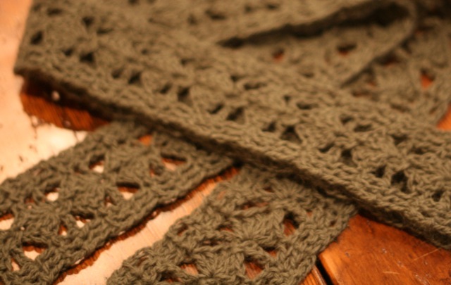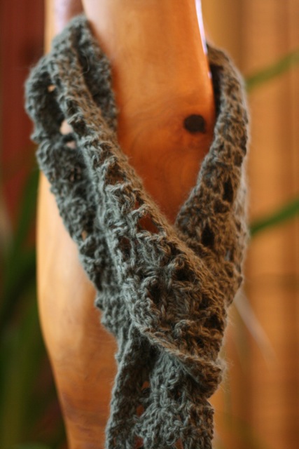 I tried a new pattern for this skinny scarf.  You can find it at http://crochet.about.com/library/weekly/aa030106.htm. I used an angora/wool blend yarn with an H hook.