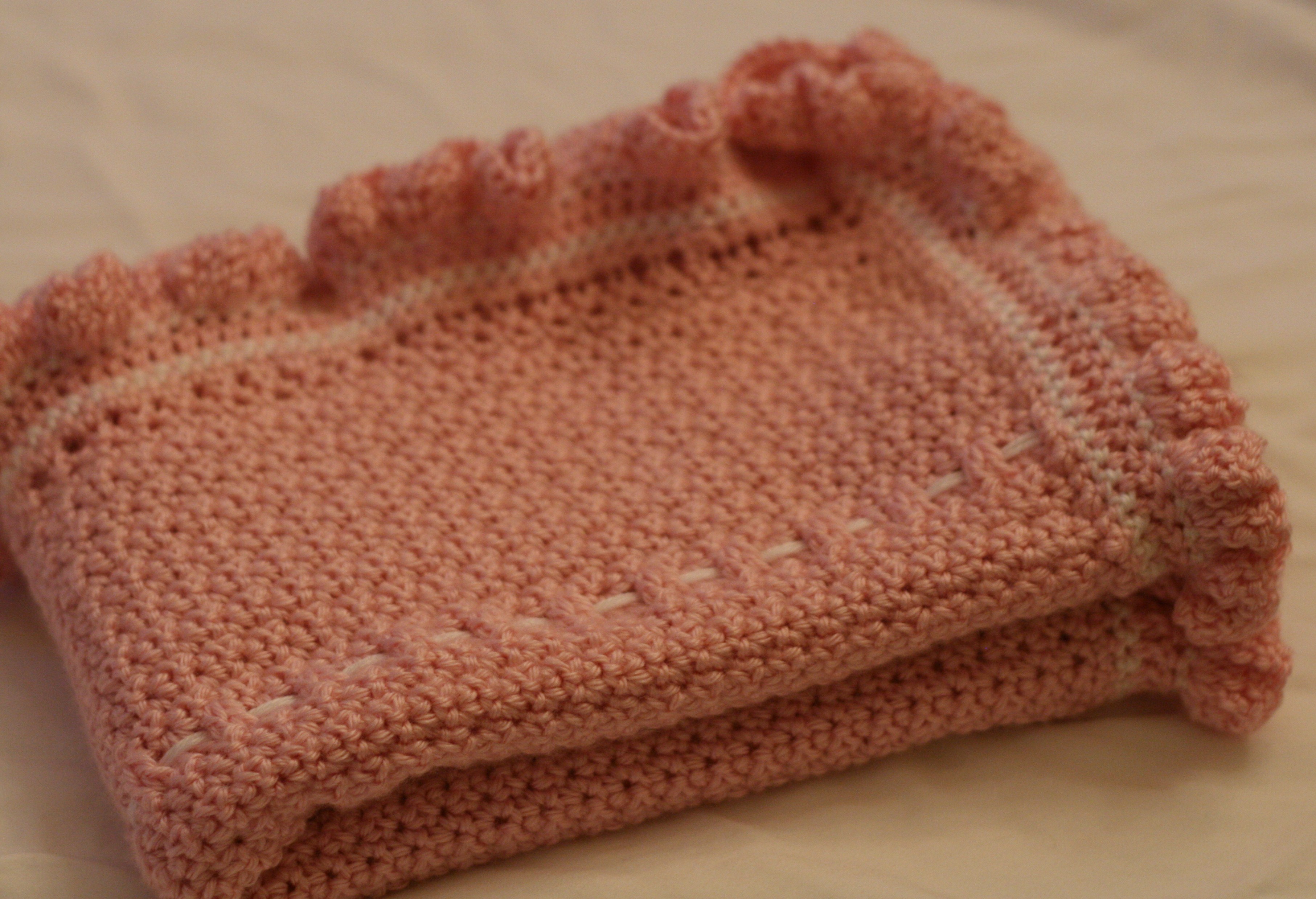 Delivered this commissioned pink ruffle baby blanket yesterday.  I made up the pattern and used Caron Simply Soft yarn.