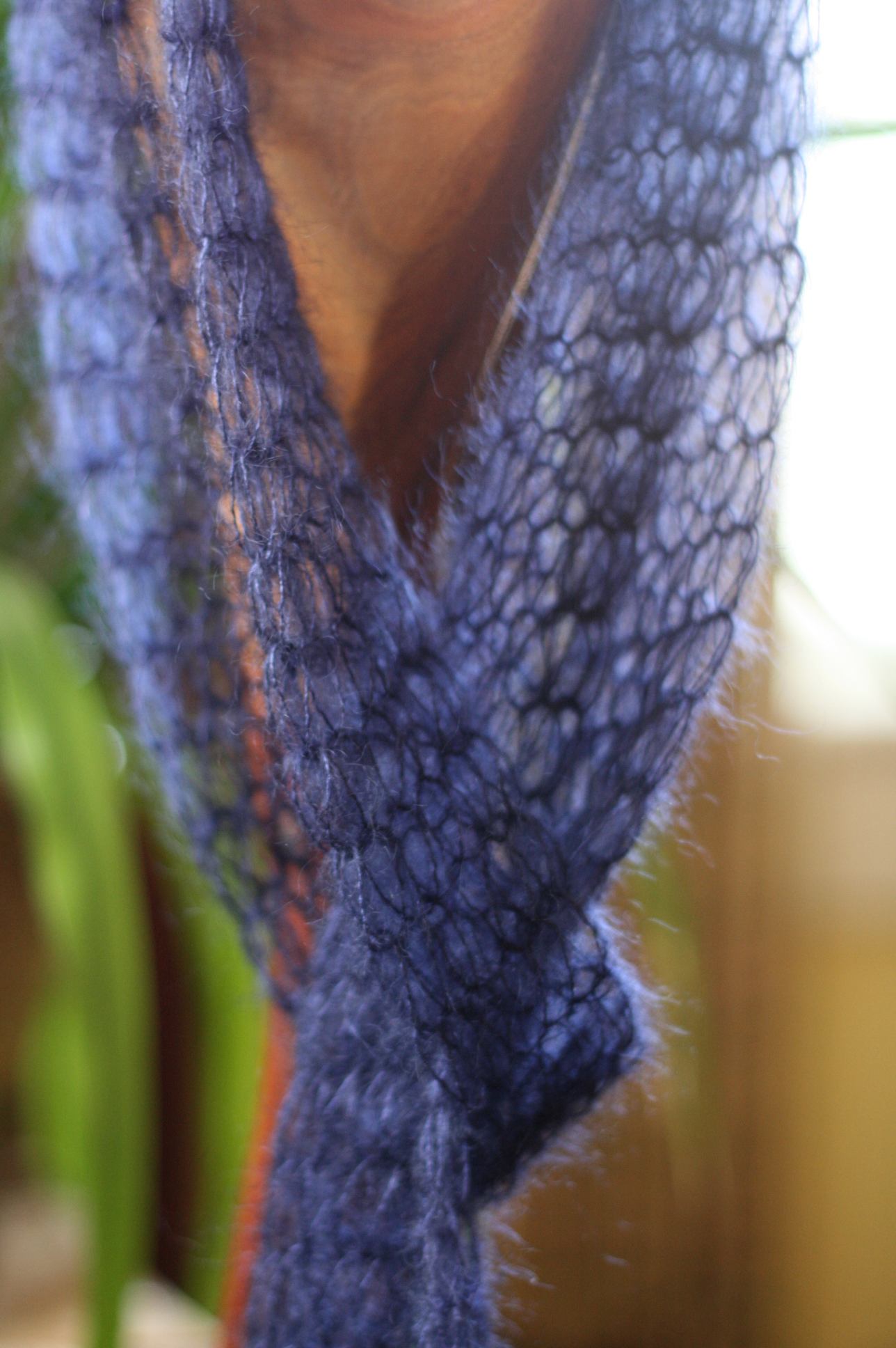 Made this loom knitted scarf for Saskia from fine silk mohair yarn.