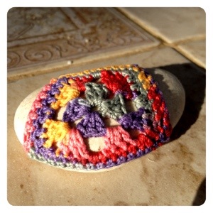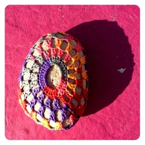 While on vacation recently I created these covered stones using crochet thread and stones and coral I found on the beach.