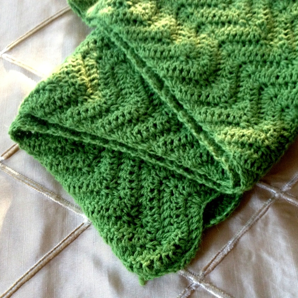 Here is a traditional wave/ripple stitch using Classic Alpaca yarn in green. I remember getting this yarn at Island Knits last year while I was on Pawley’s Island, SC.  I certainly recommend visiting their shop while you’re at the beach.  They have lots of great yarn and friendly staff 🙂