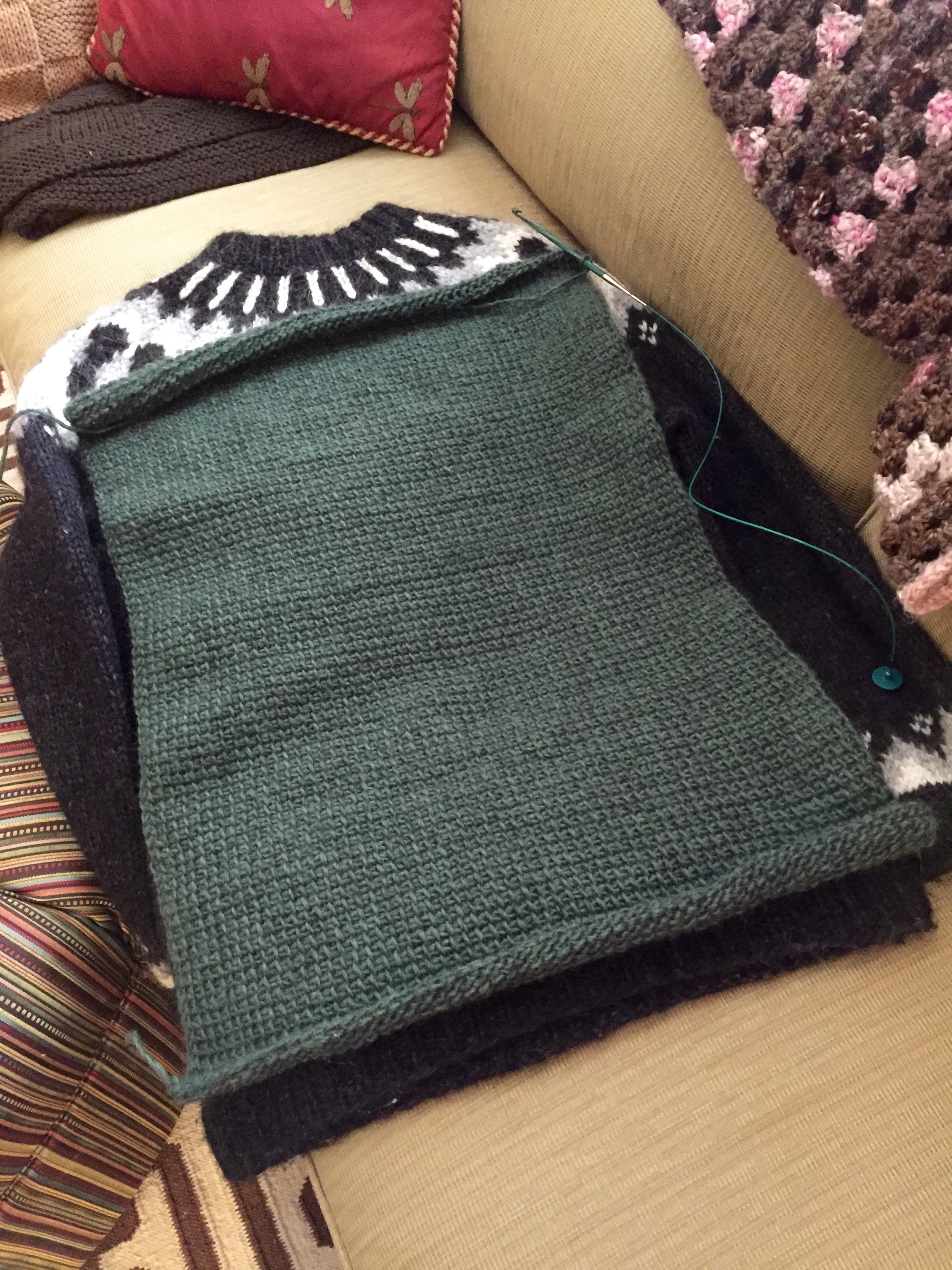 I used my Icelandic Lopi sweater as a size guide to make sure it was going to look ok.