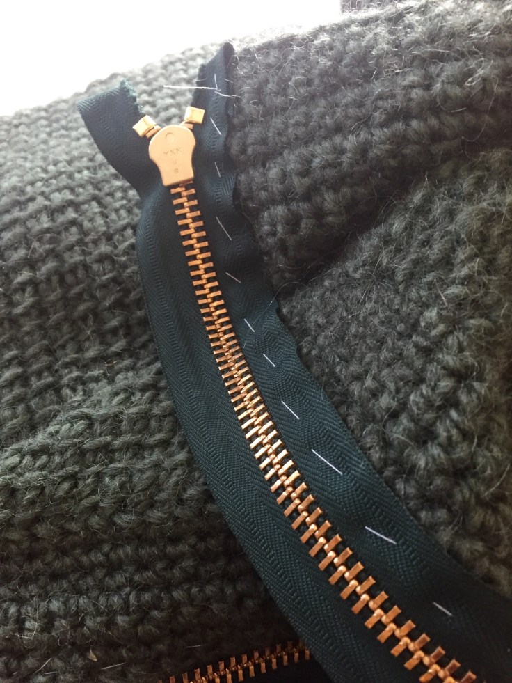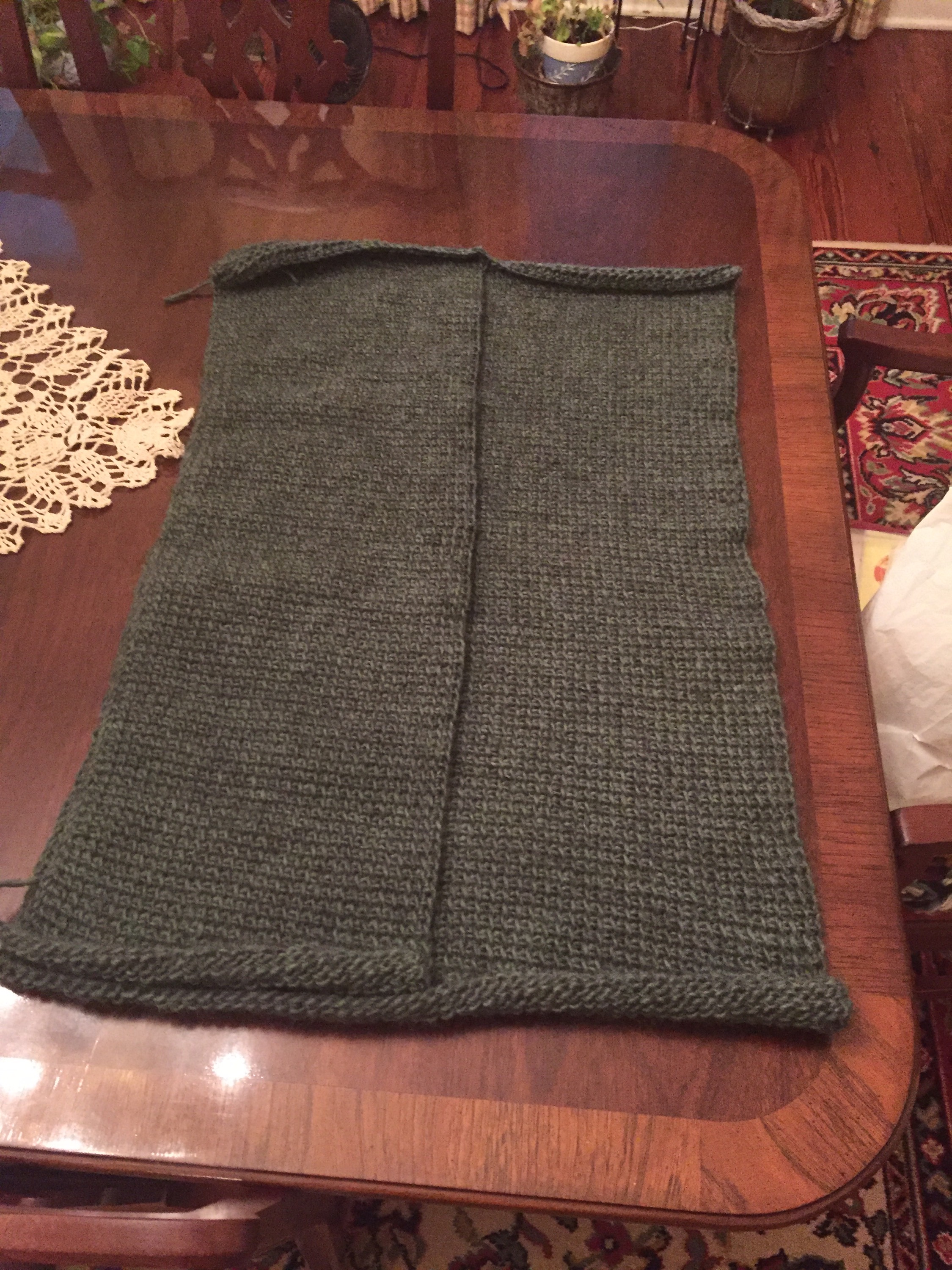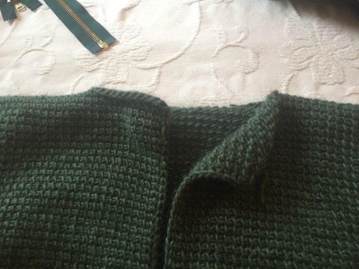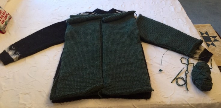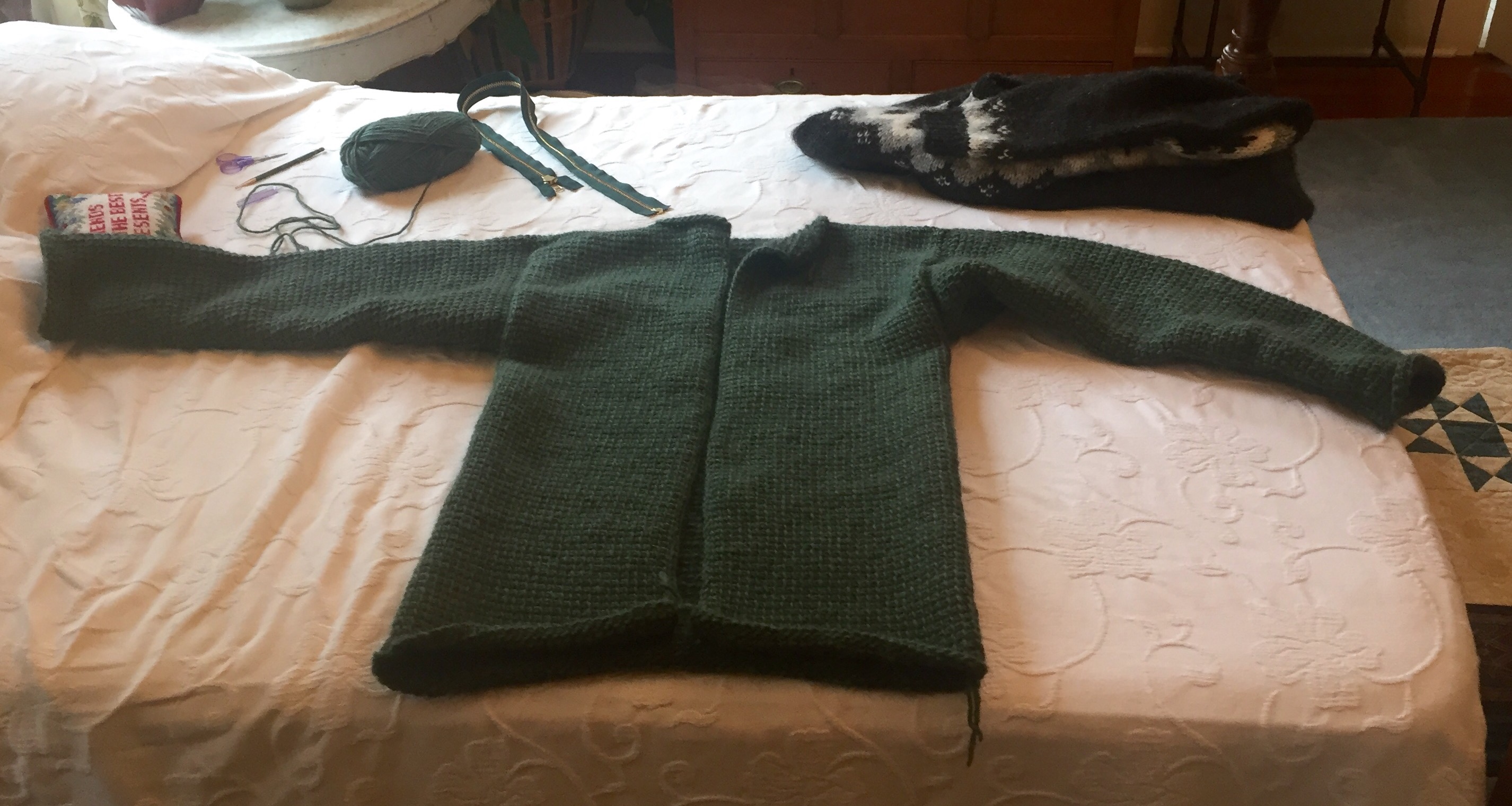Well it’s been about two months, but I’ve finally finished my first sweater! And I think it turned out really nice! I use green Lopi wool (took about 11 skeins) and the zipper is brass that my sister sewed in for me. I used a free Ravelry pattern that is called Tunisian Rib Stitch Zip Front Cardigan by Treva McCain. You can download it here for free. However, I only used the basic shapes and sizes from the pattern and made the collar larger to fit the zipper I bought online which was 34 inches. I also used a size K tunisian crochet hook. I’m really happy with the way it turned out!