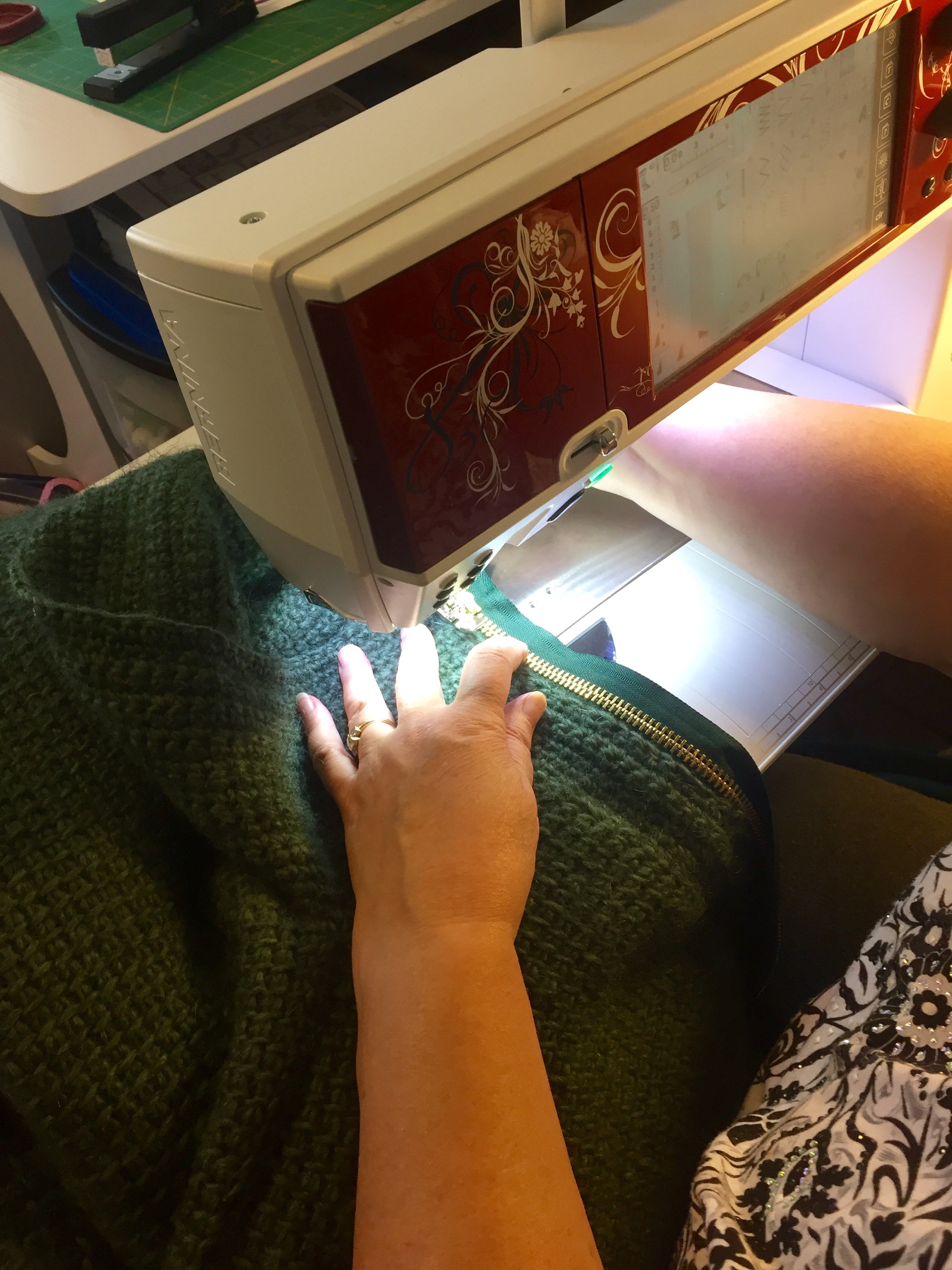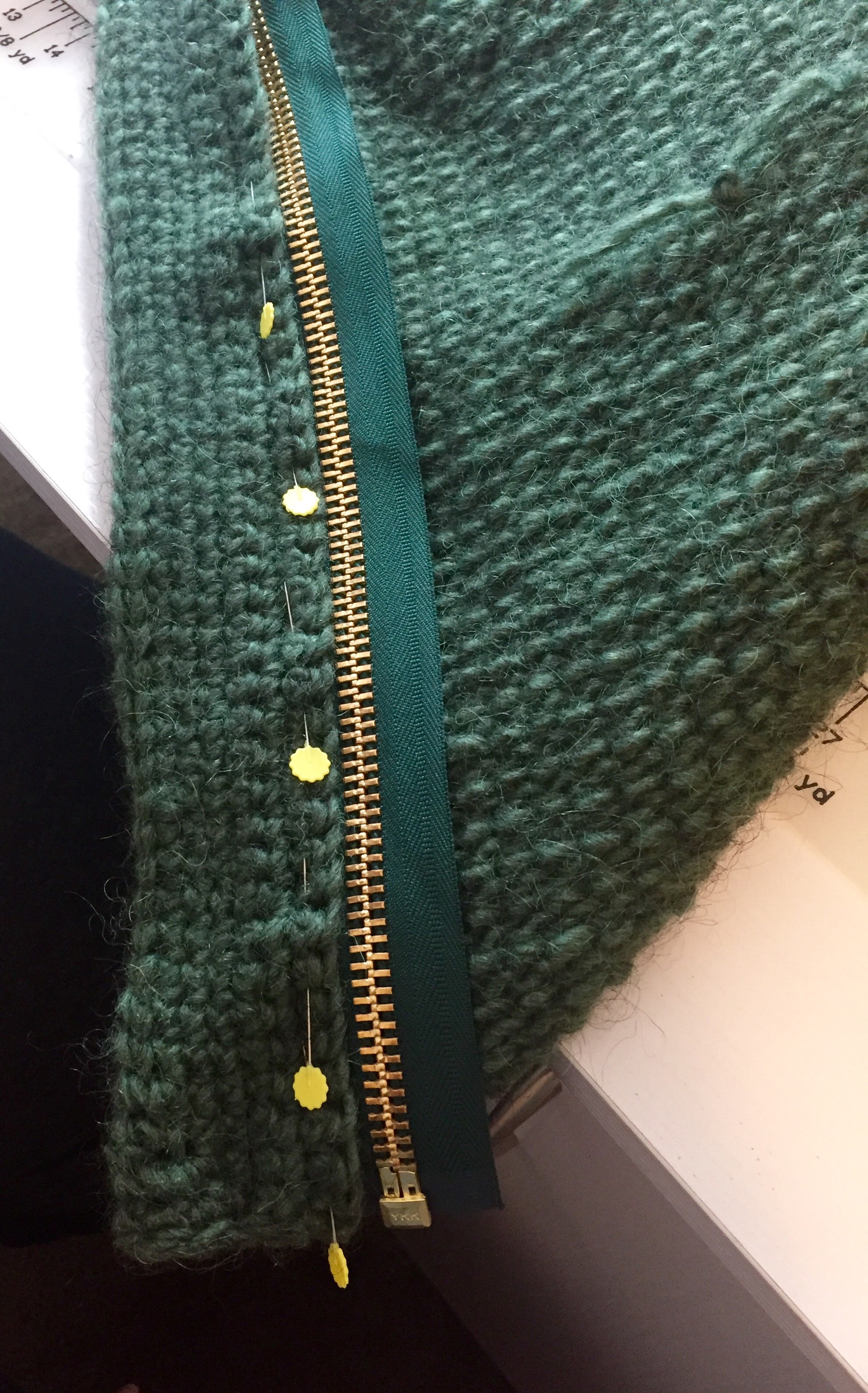The above picture is lining up the zipper with pins before it gets sewn in.