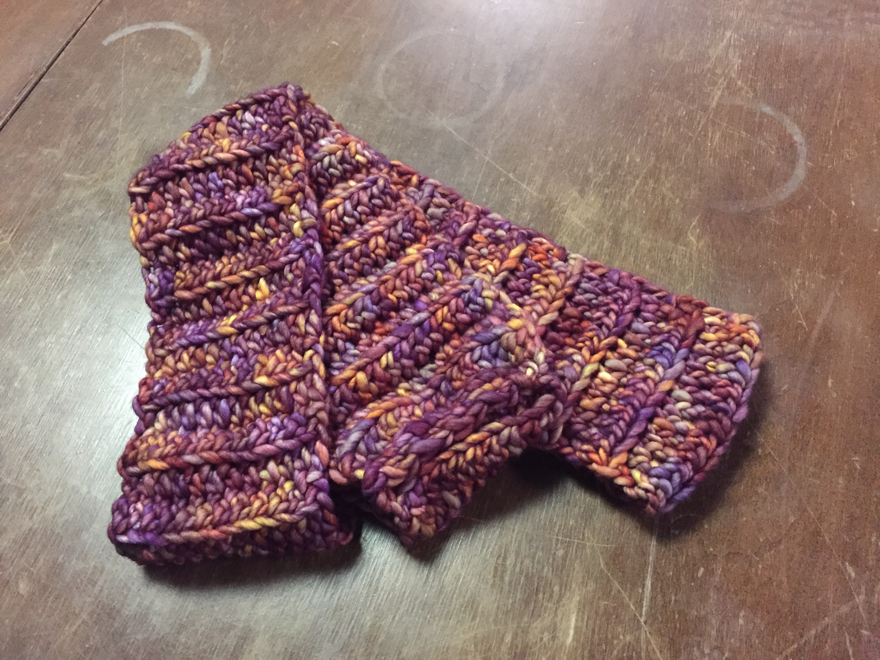 Made this wonderful cowl today with two skeins of Malabrigo roasts in a half double crochet through the back loop with a 9mm bamboo hook.