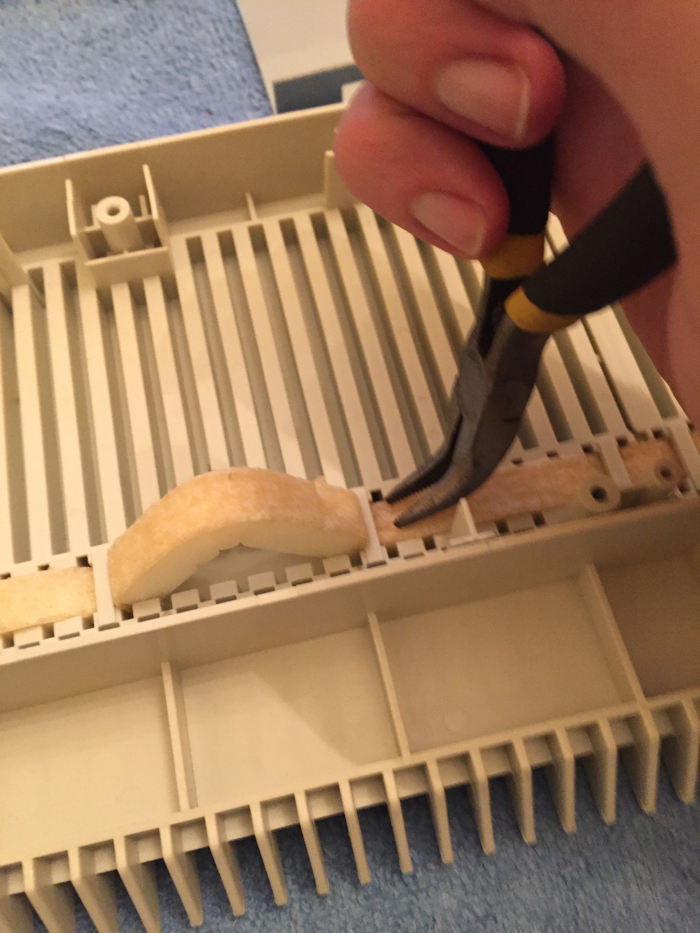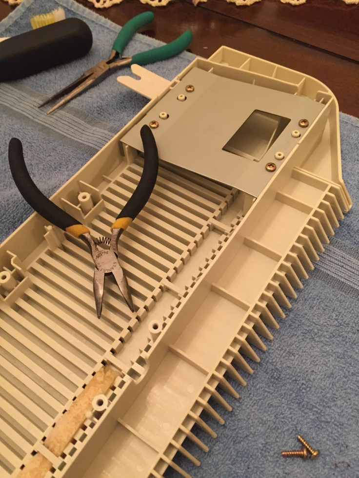 It’s been a fun adventure because I’ve had to do some cleaning and repairs before I could us the machine. In the photos you can see that I had to remove the back panels and remove the old sponge bar and replace it after cleaning the channel out with denatured alcohol.