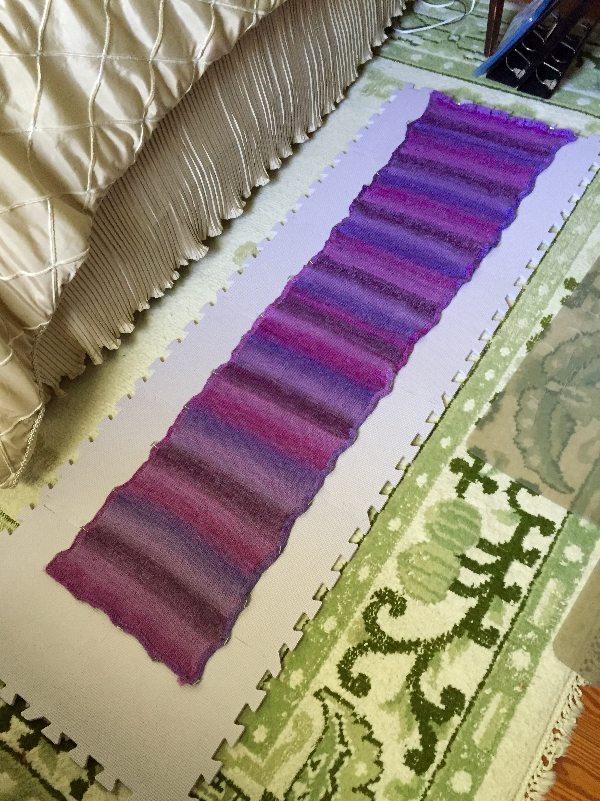 So I decided after everything seemed to be in working order I’d use some old yarn in my stash and test everything out. As you can see, it works! This is my first piece of work on a knitting machine and it only took one evening and next morning to complete (because I did the edge in a basic double crochet). So I guess you could say I’m hooked!