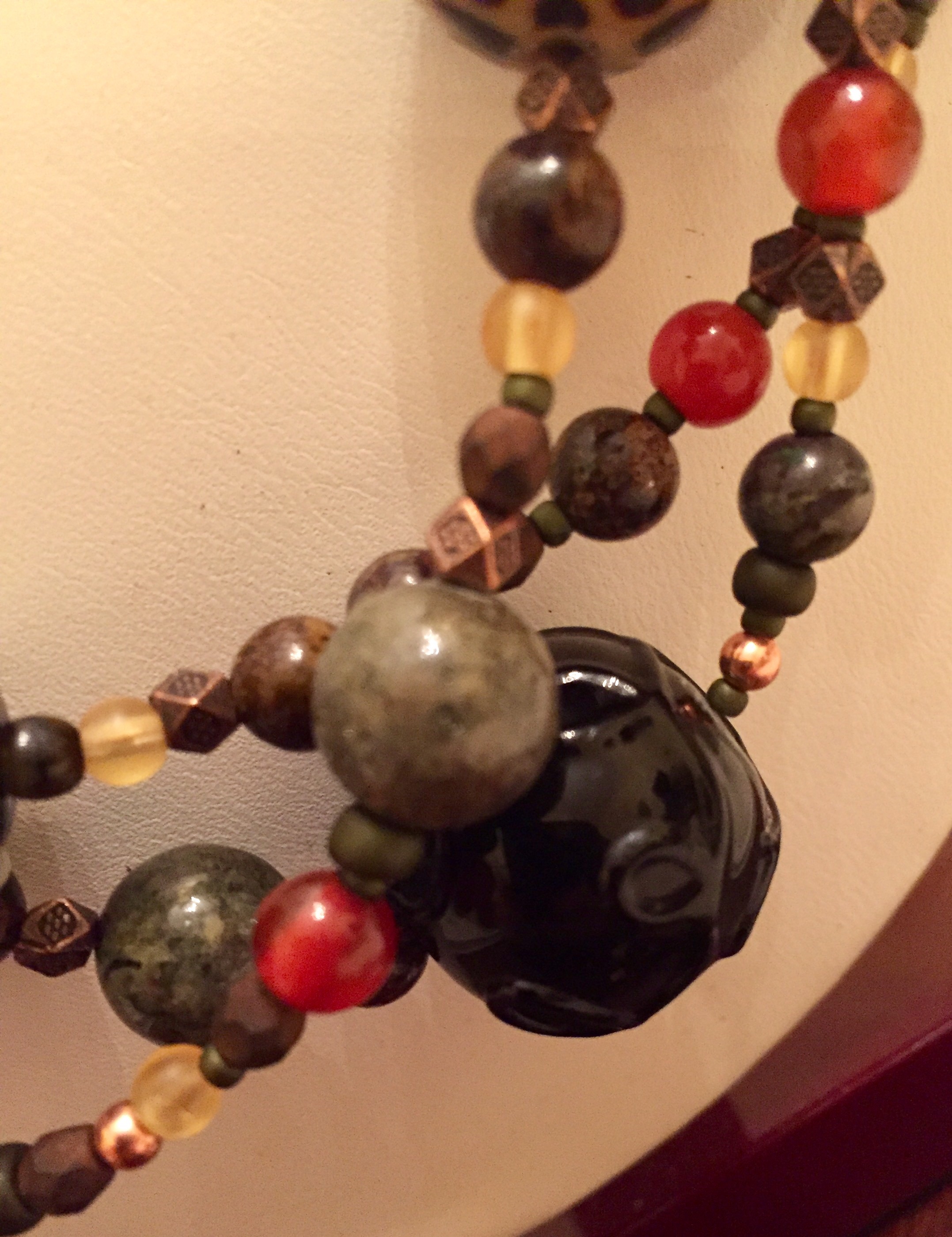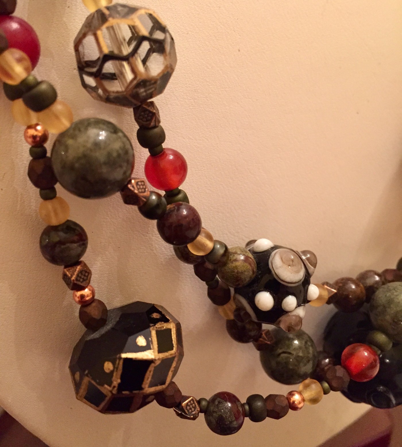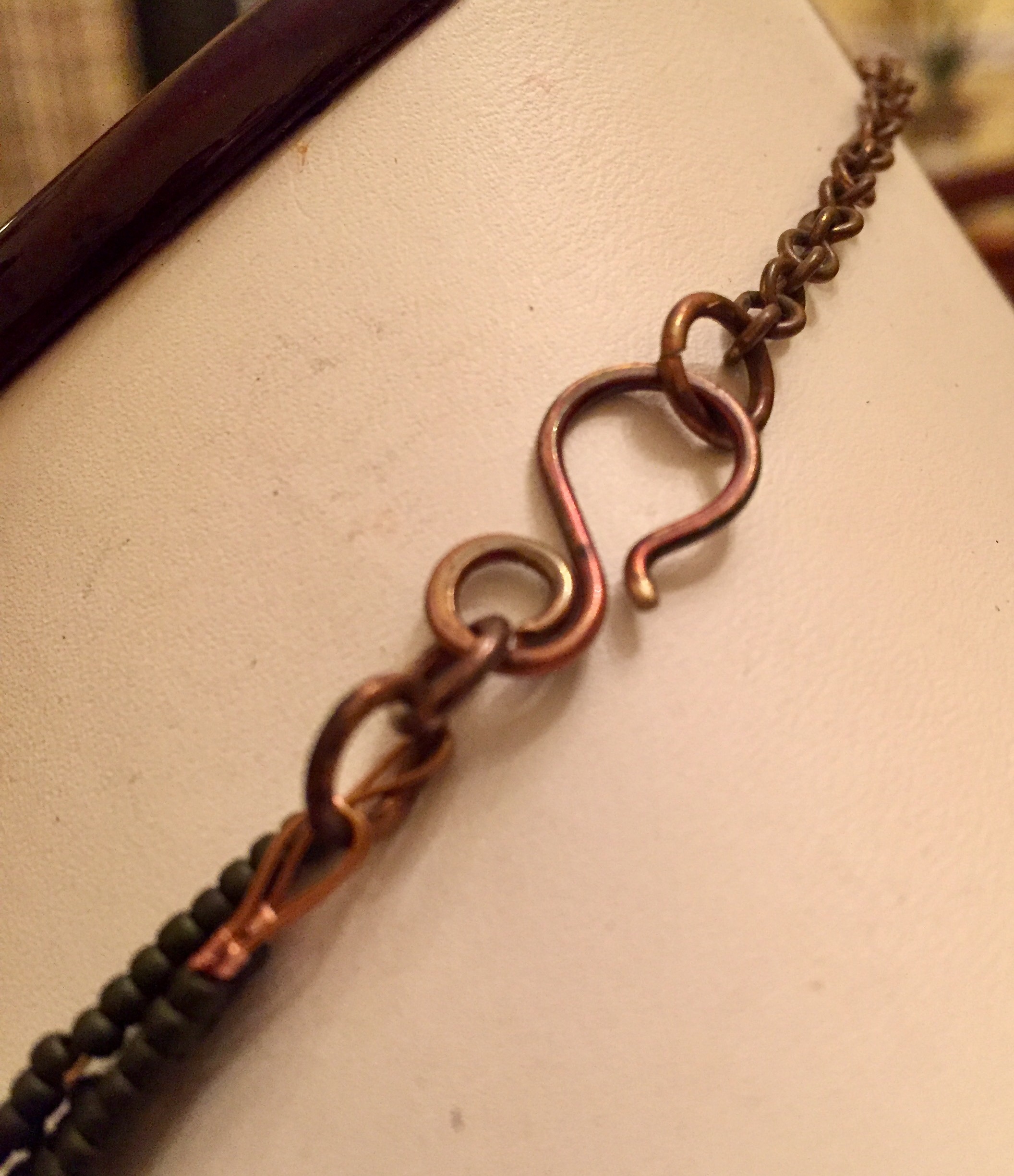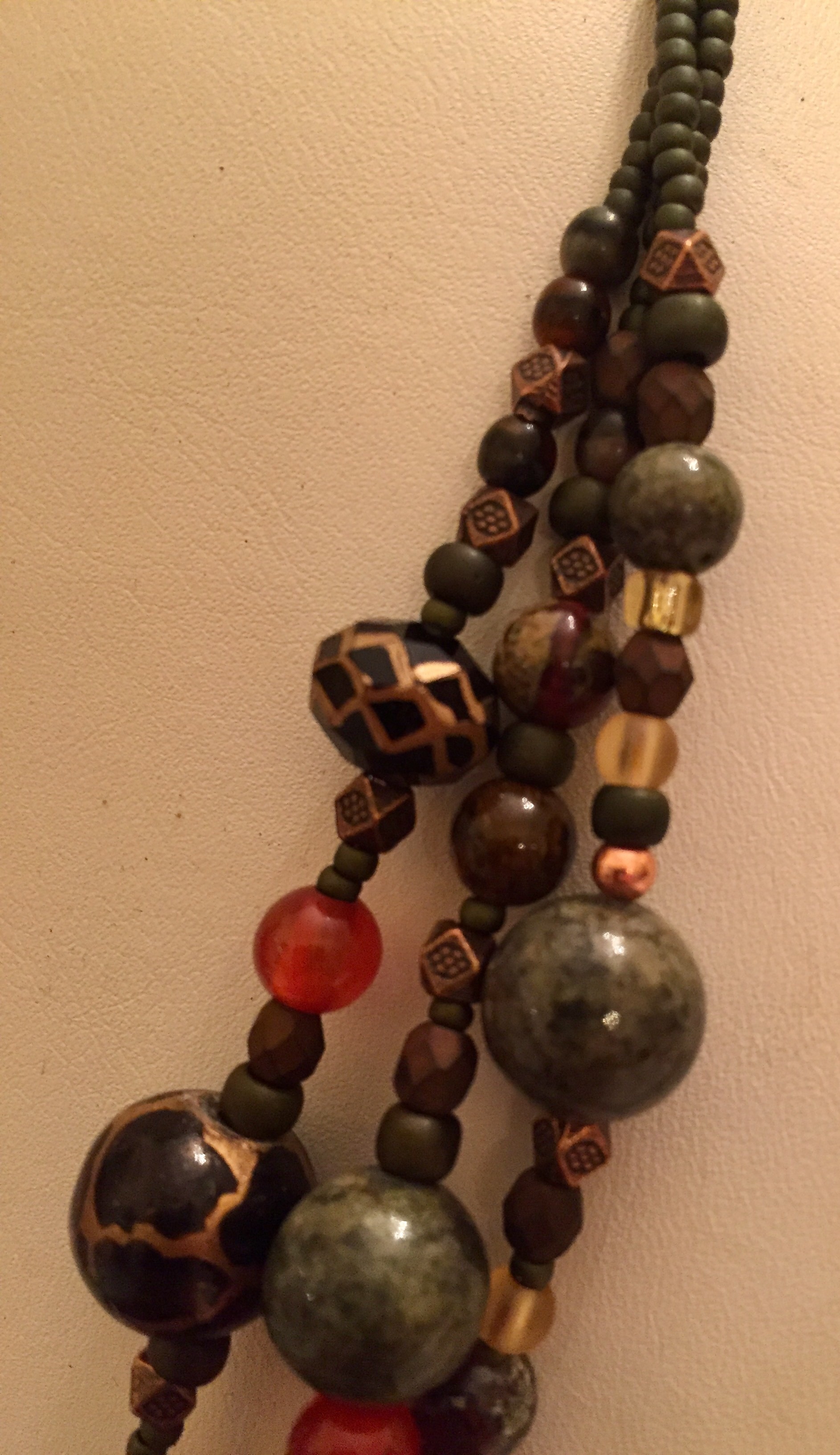 I was invited again this year to submit a jewelry item for the South Carolina Library Association annual conference scholarship for diversity fundraiser. I decided to use a mix of beads and various colors. They range from lampwork beads to Stone to glass and copper and seed beads. The clasp is handmade copper. I hope it sells for a lot of money so that it can go towards the scholarship funds.