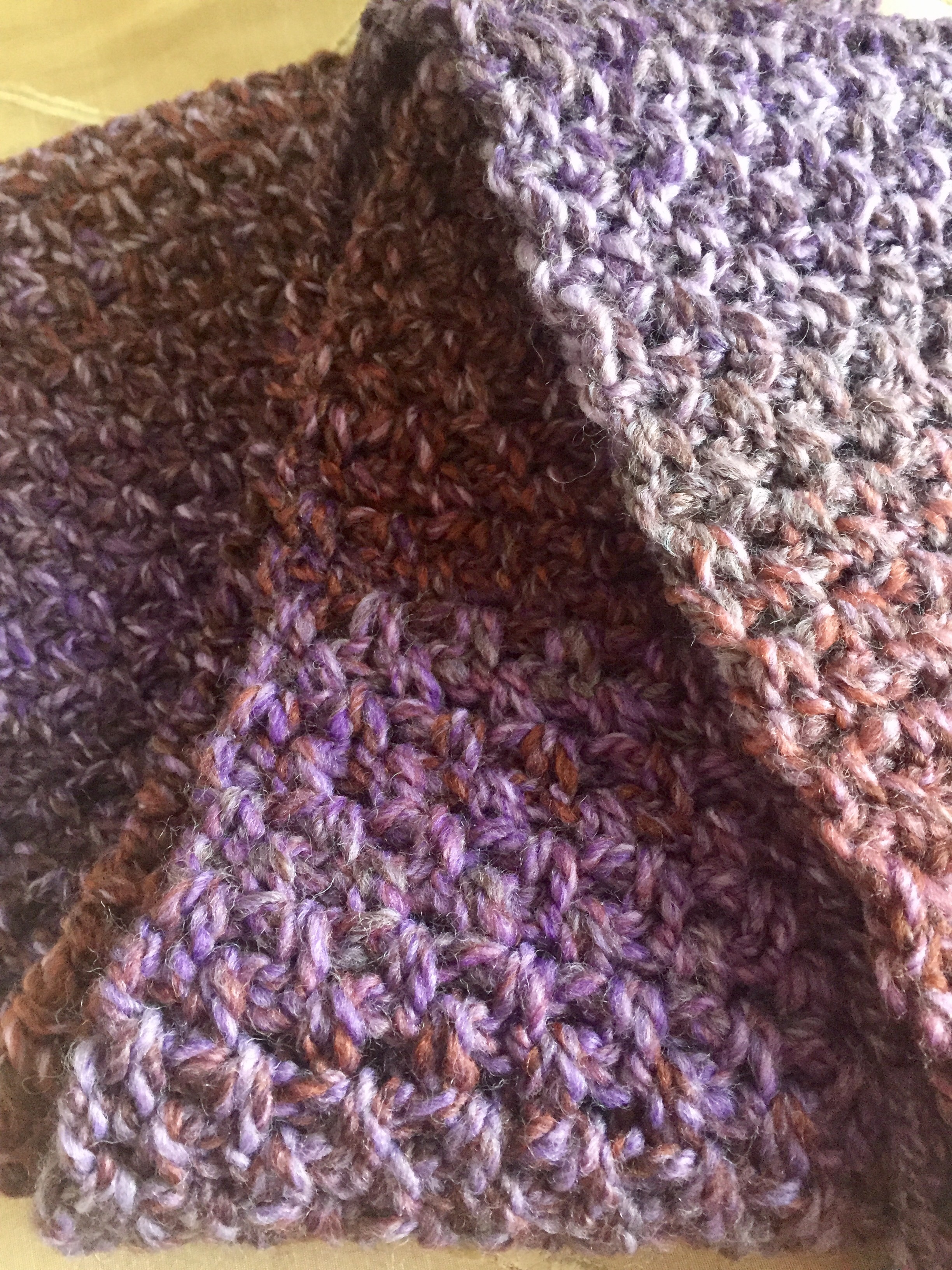 For this scarf I used two skeins of cascade Covington wool and acrylic blend yarn. I used a size 10 mm crochet hook and the stitch is a linen stitch.