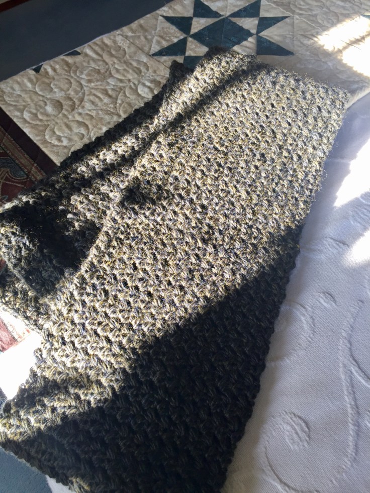 I finally finished this scarf using echo view fiber mill 100% merino wool in a mini bean stitch. I also used a size J crochet hook. The wool is incredibly soft and this will make a really nice scarf for someone.