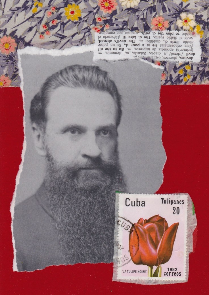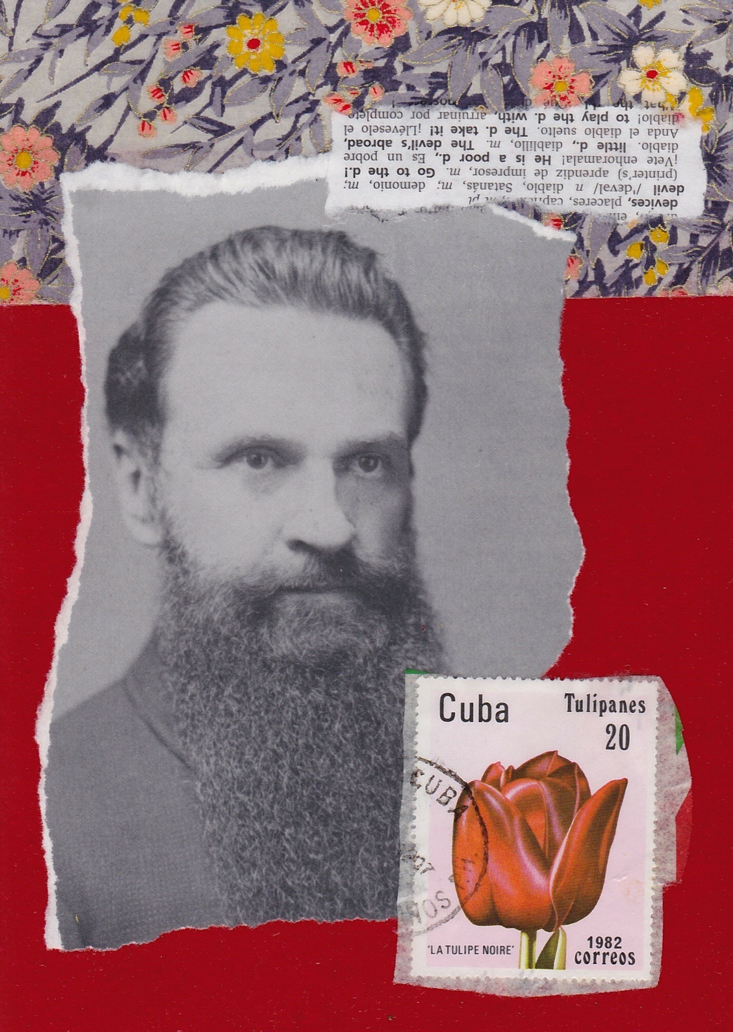Devil – 2017, 5×7, Collage on canvas board. Yuzen Chiyogami Washi Origami Paper, postage stamp, book image