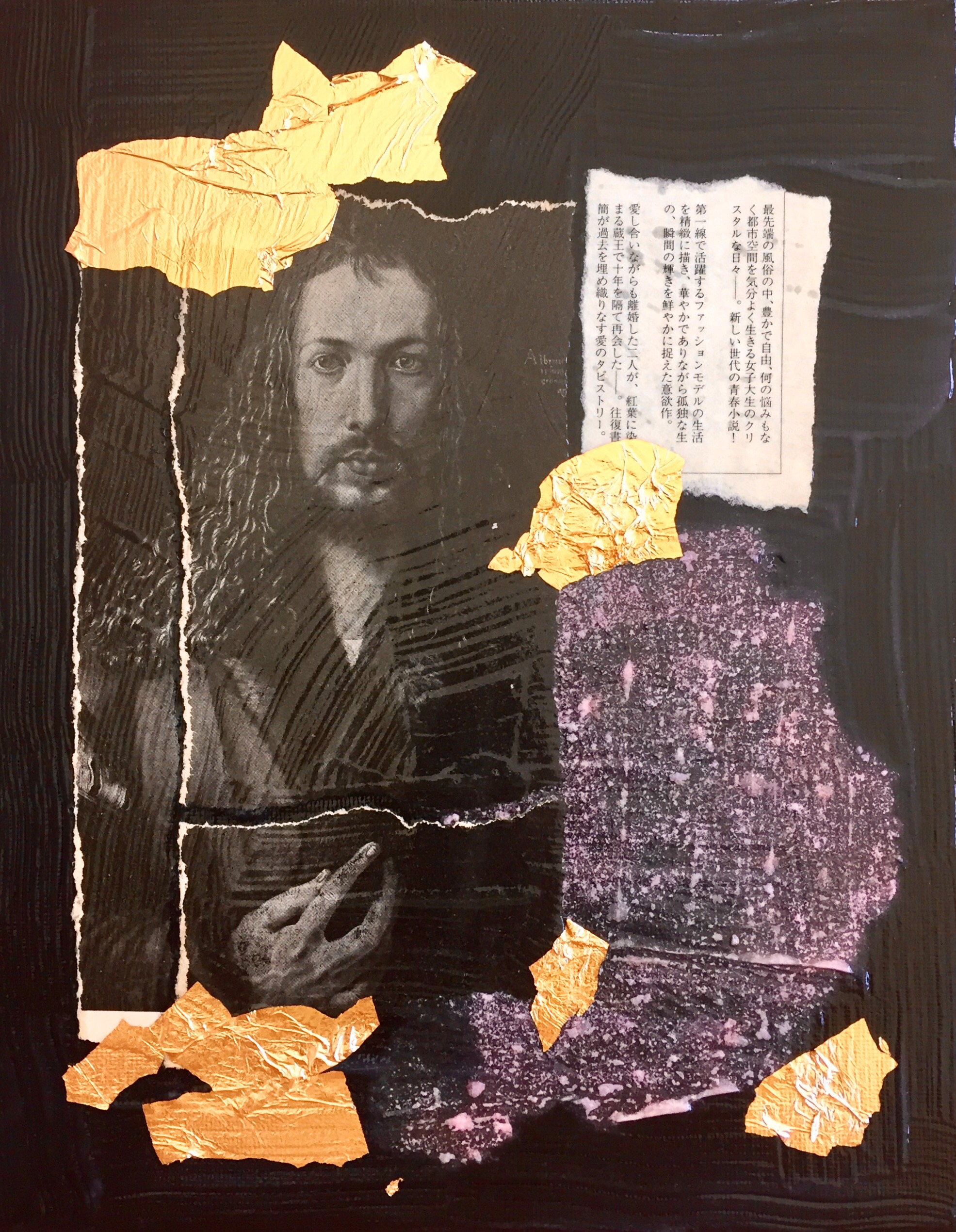 Collage. Paper, metal leaf