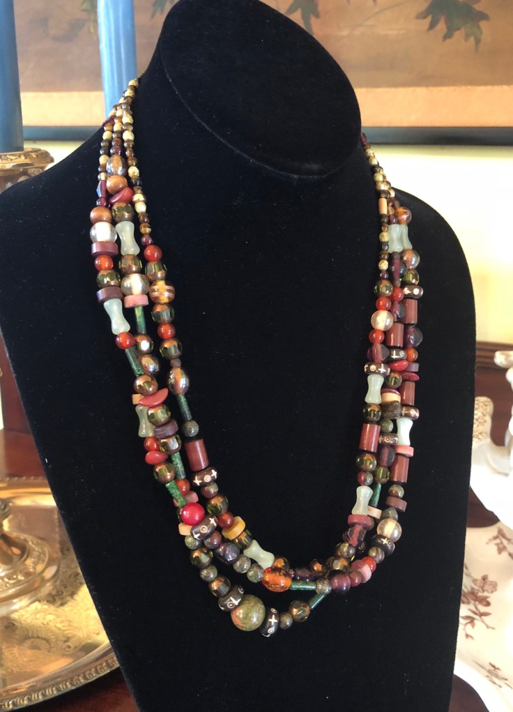 I was happy to provide another silent auction handmade beaded necklace for the annual South Carolina Library Association’s annual conference that was recently held in Greenville, South Carolina. The necklace went for $65! It has a number of different stone and glass beads and even wood ones too.