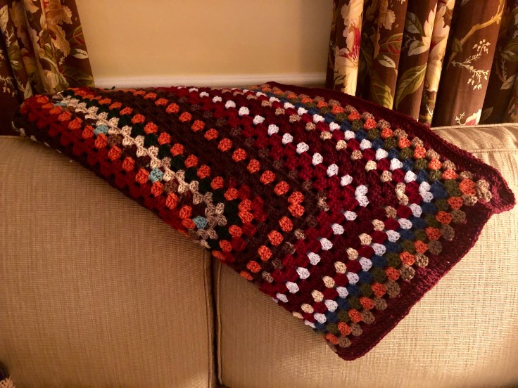 Made this from a variety of acrylic “donations” to my stash that I would otherwise never use. The colors seem to actually go together quite well. Glad to finally have it done!