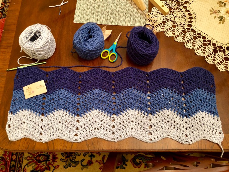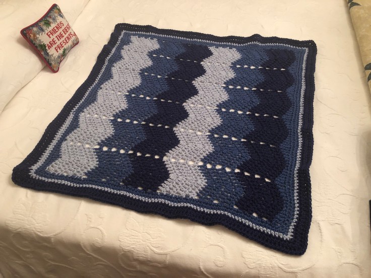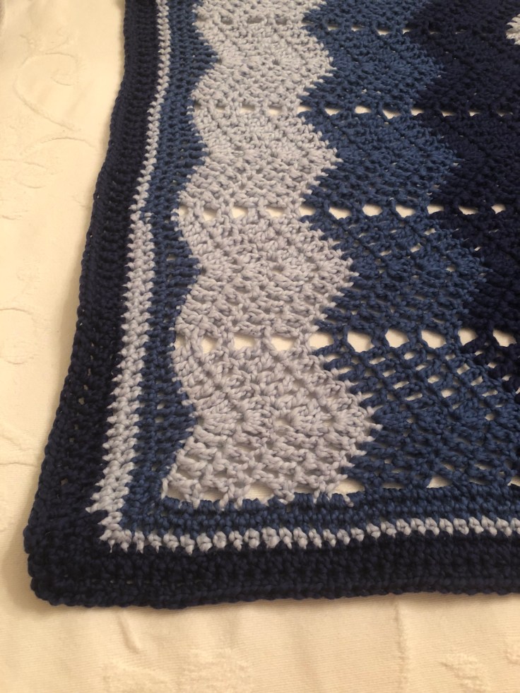 I made this in just a few weeks with Plymouth Yarn cotton forget me not. I didn’t use a pattern. It ended up taking almost four skeins.