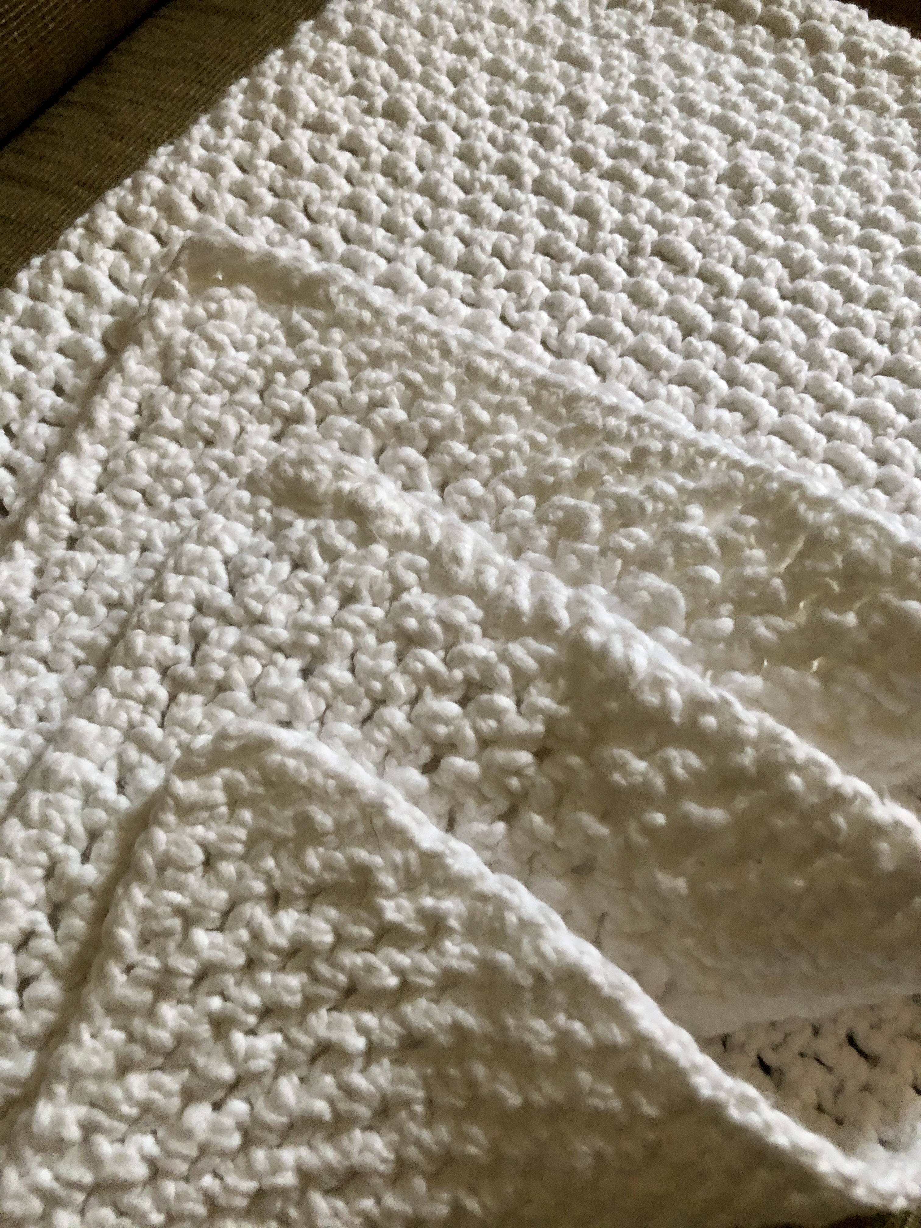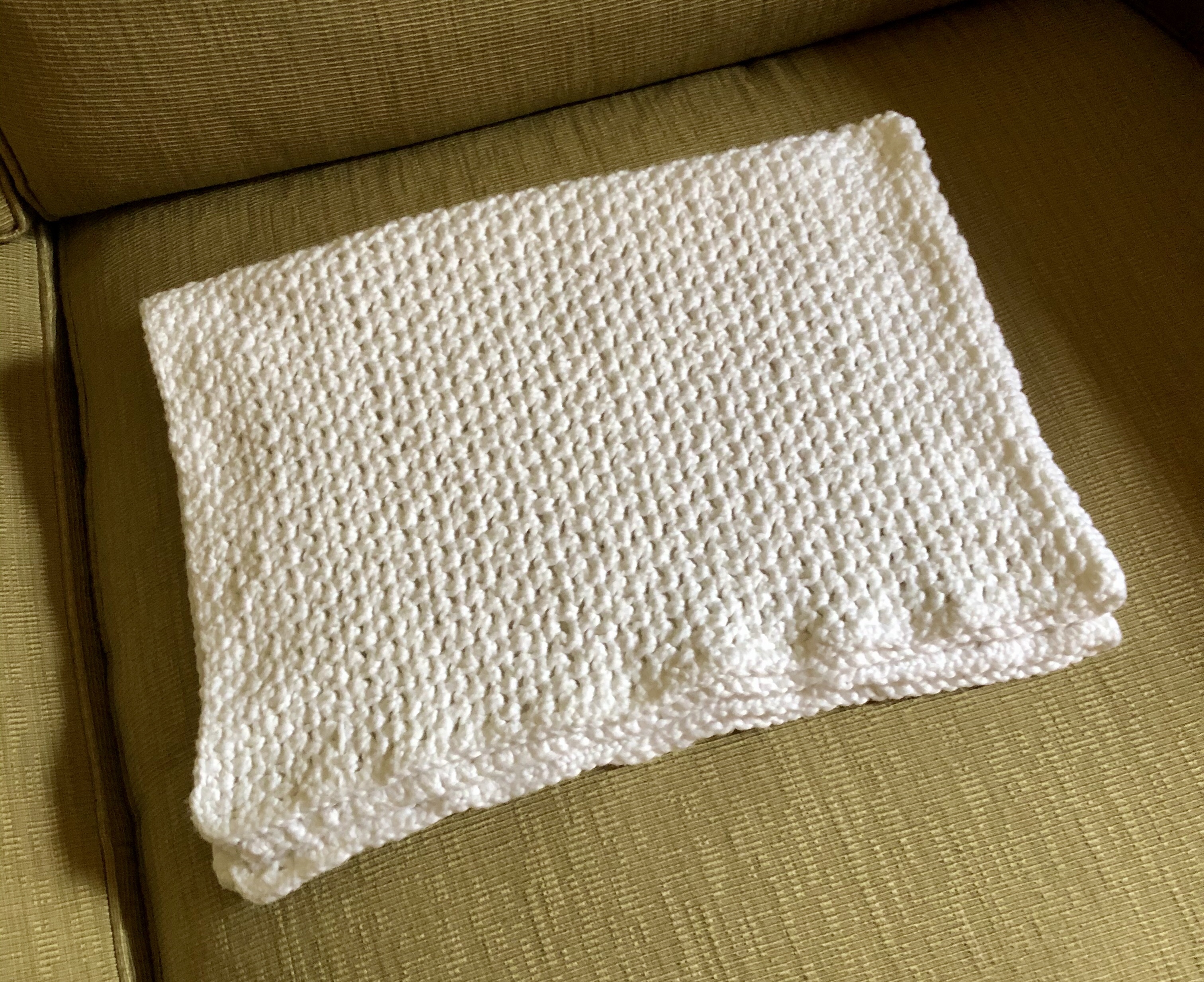Here is a baby blanket in Plymouth yarn cotton. I used 5 skeins and a K hook and a moss or linen stitch.