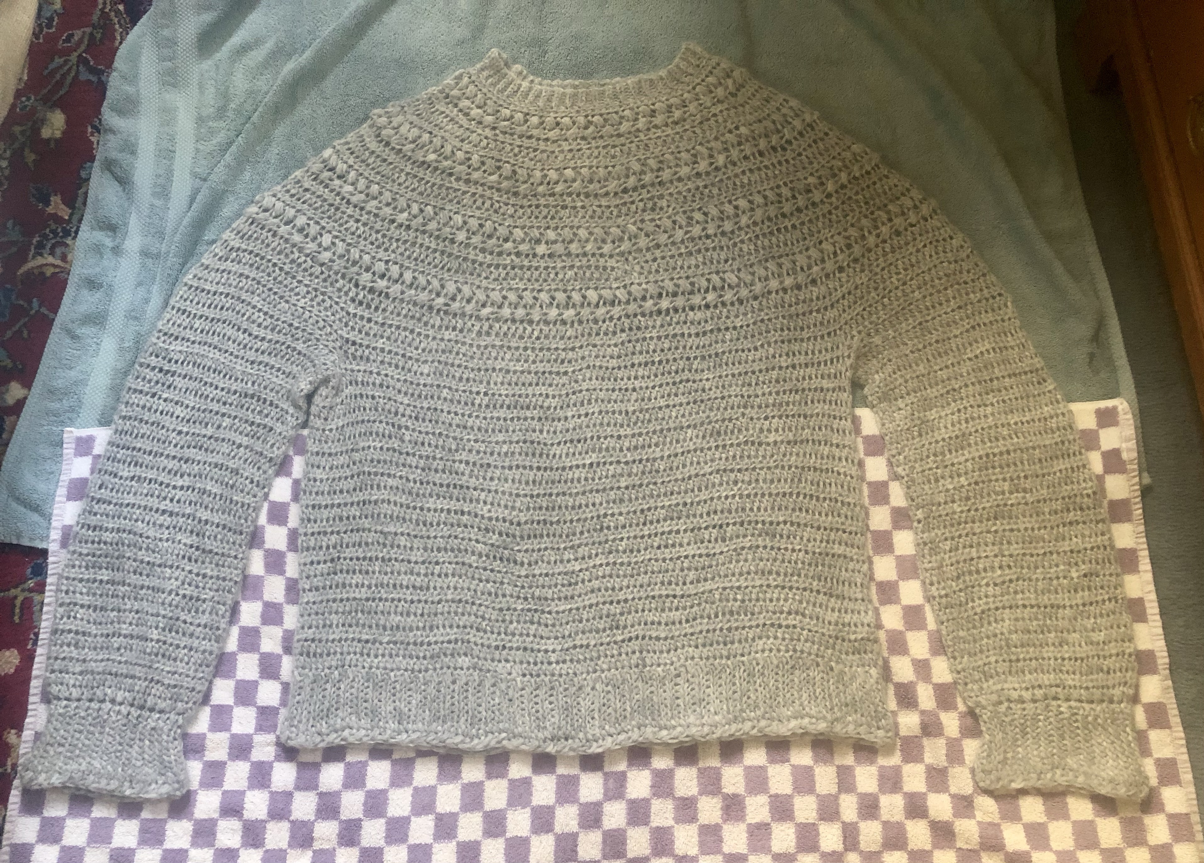 This is my first top down crocheted sweater and I think it turned out great. I slightly adjusted the pattern and used a plain HDC stitch instead of the one called for. You can find the pattern and yarns here.
