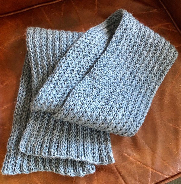 I created this scarf on my knitting board using peace fleece yarn I ordered from Purls Yarn Emporium and a ribbed stitch.